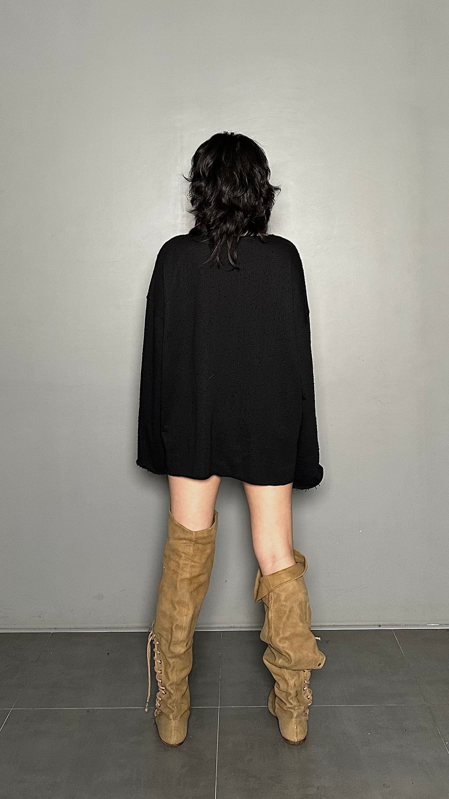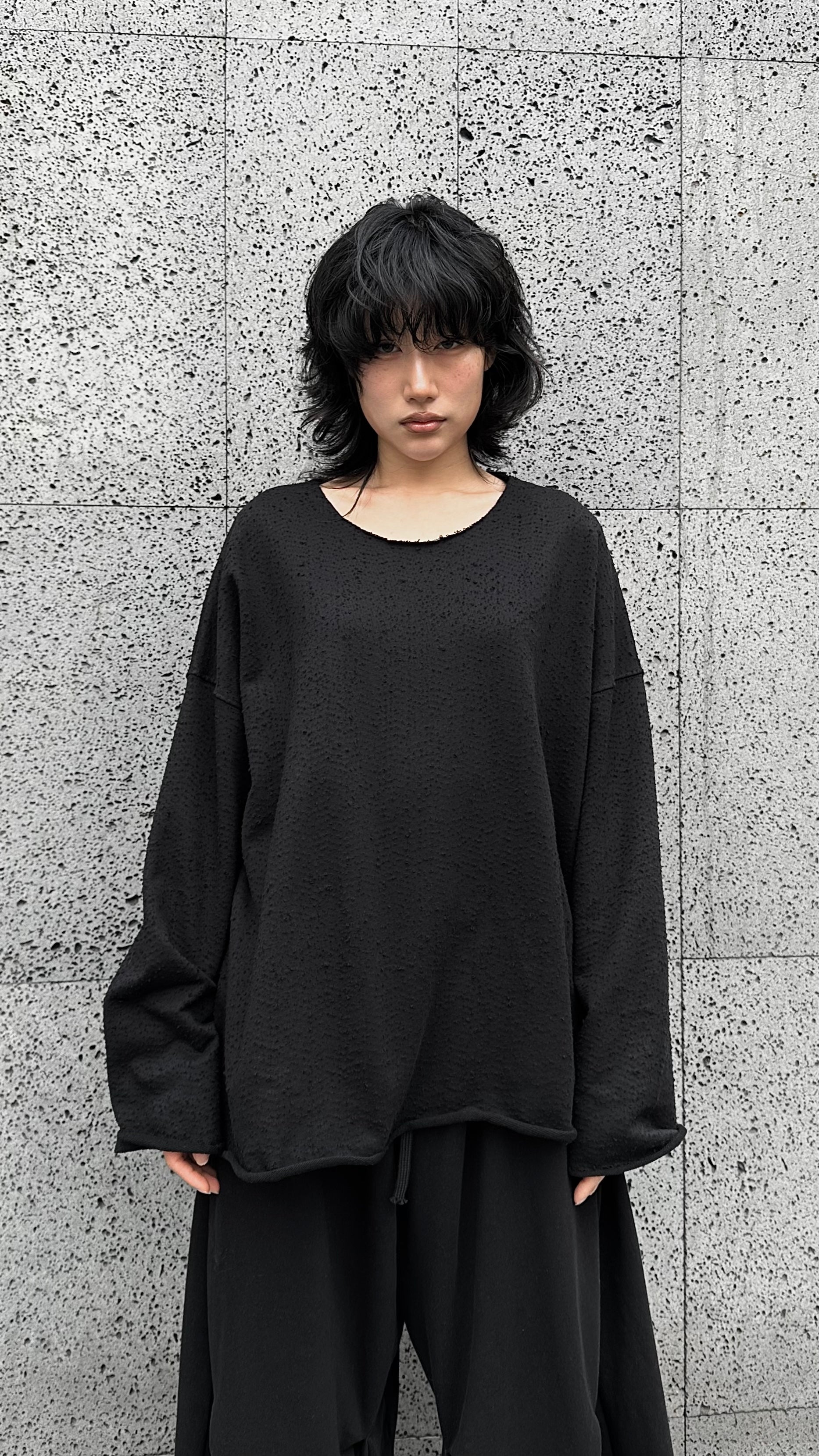 FW25 AMU Unisex. Textured Round-neck Tee (Reversible) #BLACK