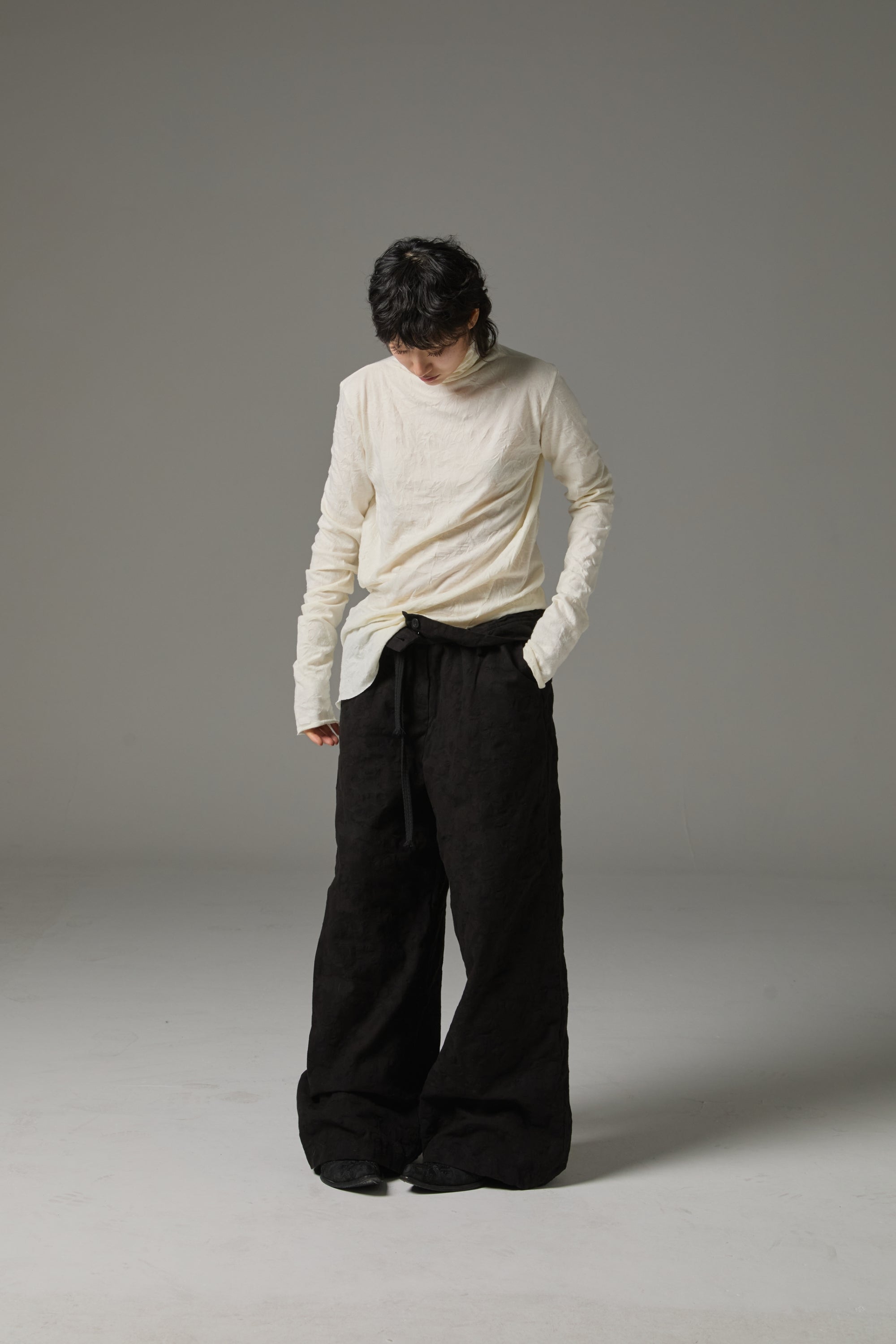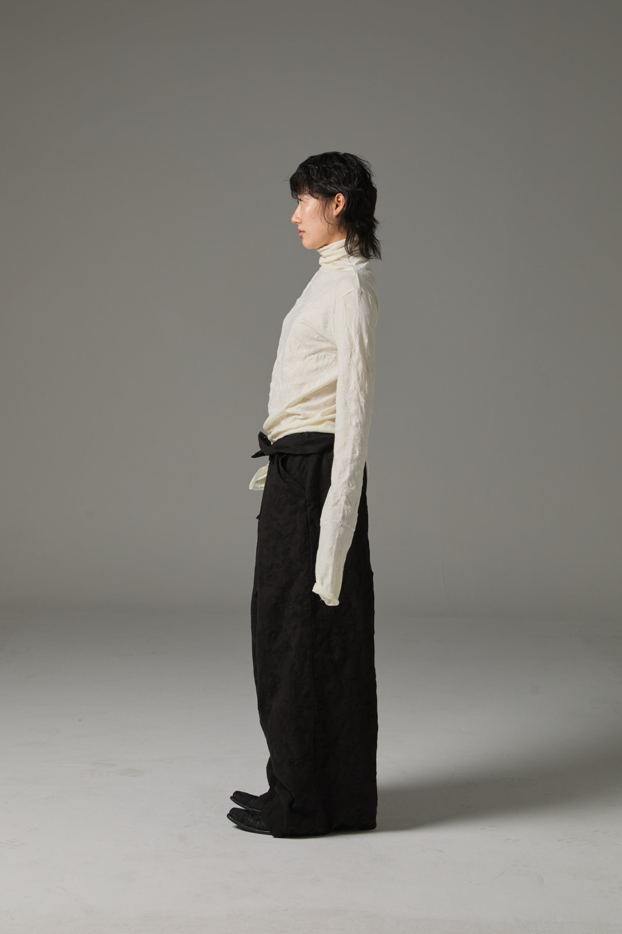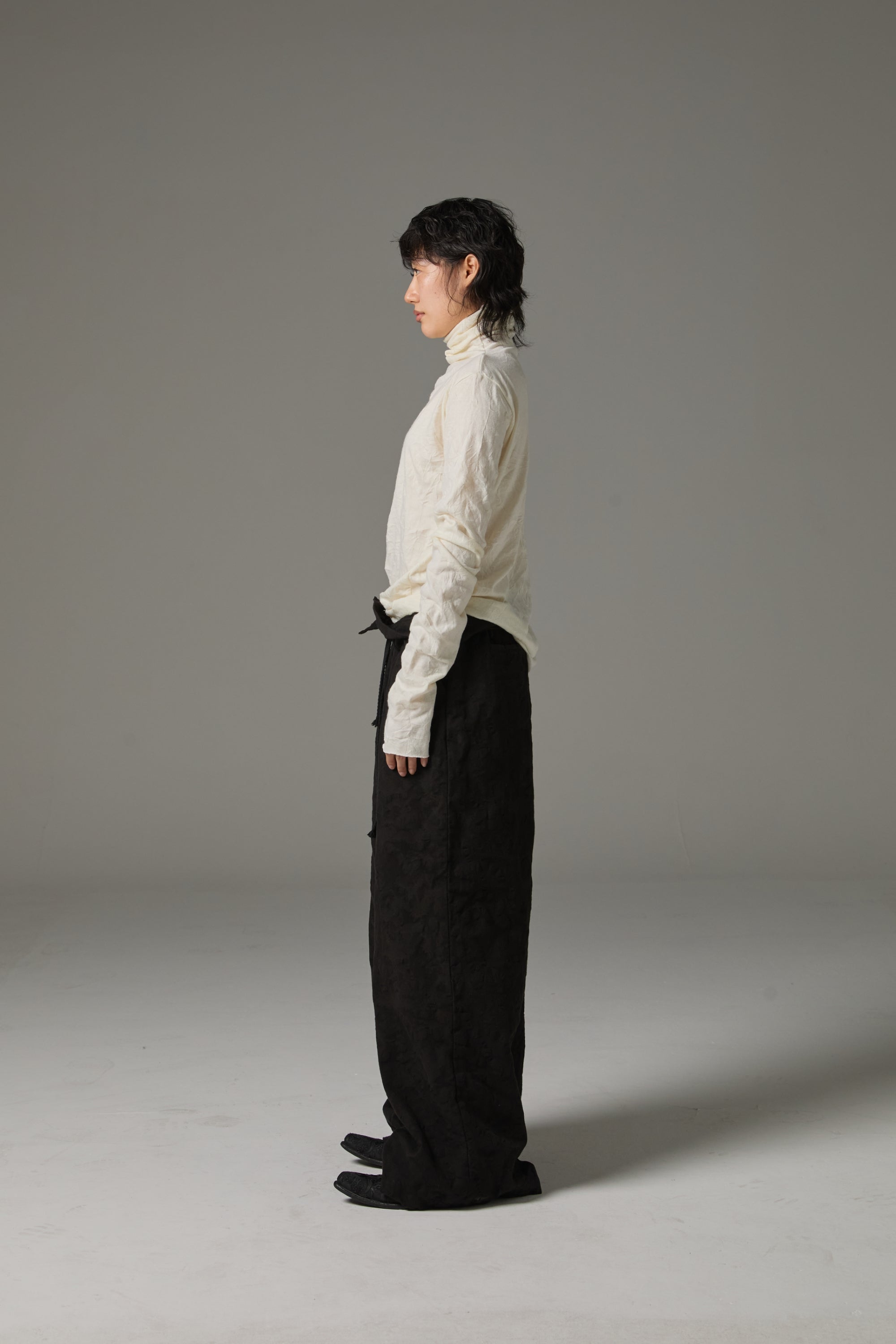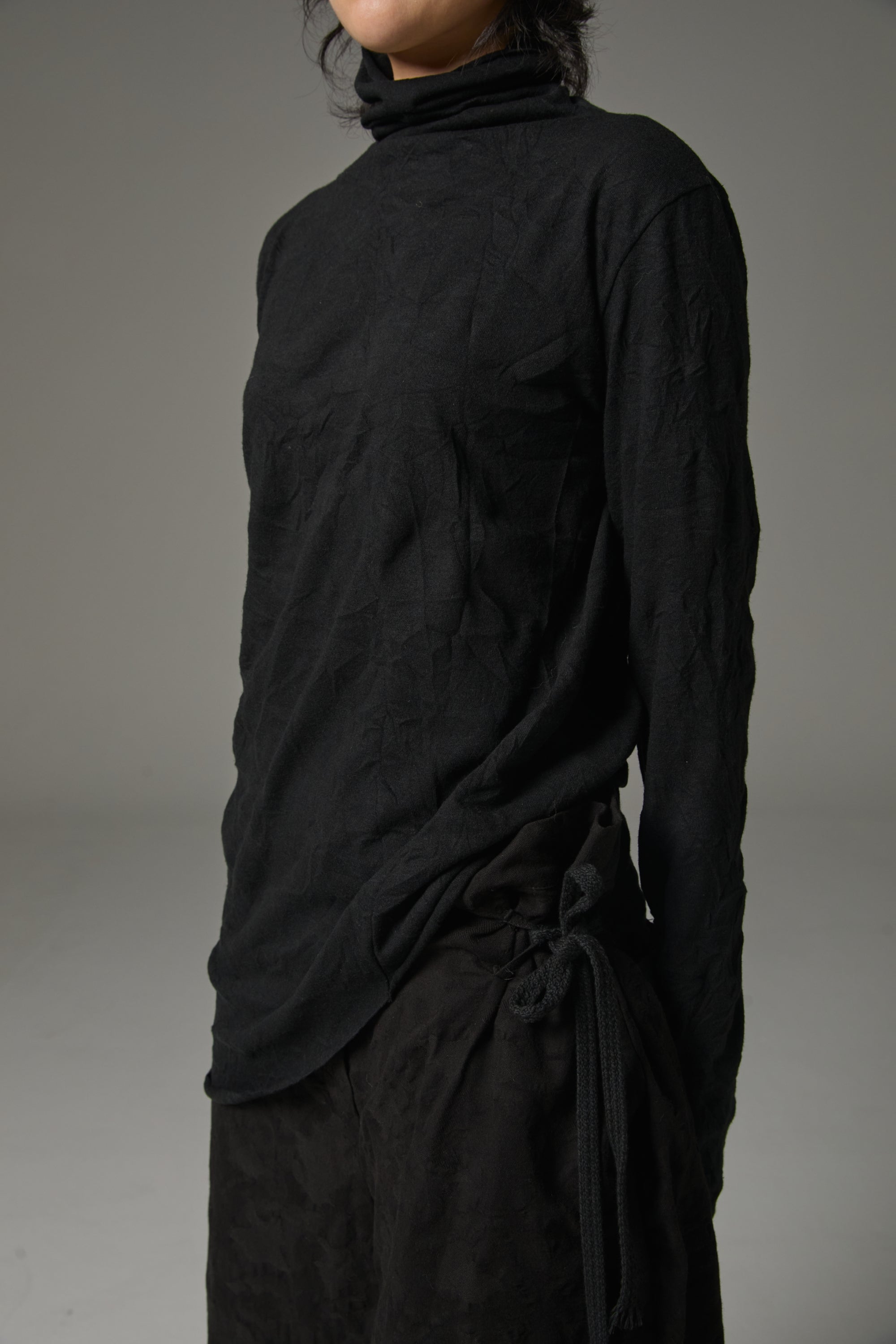 FW25 AMU UNISEX. Wrinkled Long Turtleneck Top #BLACK