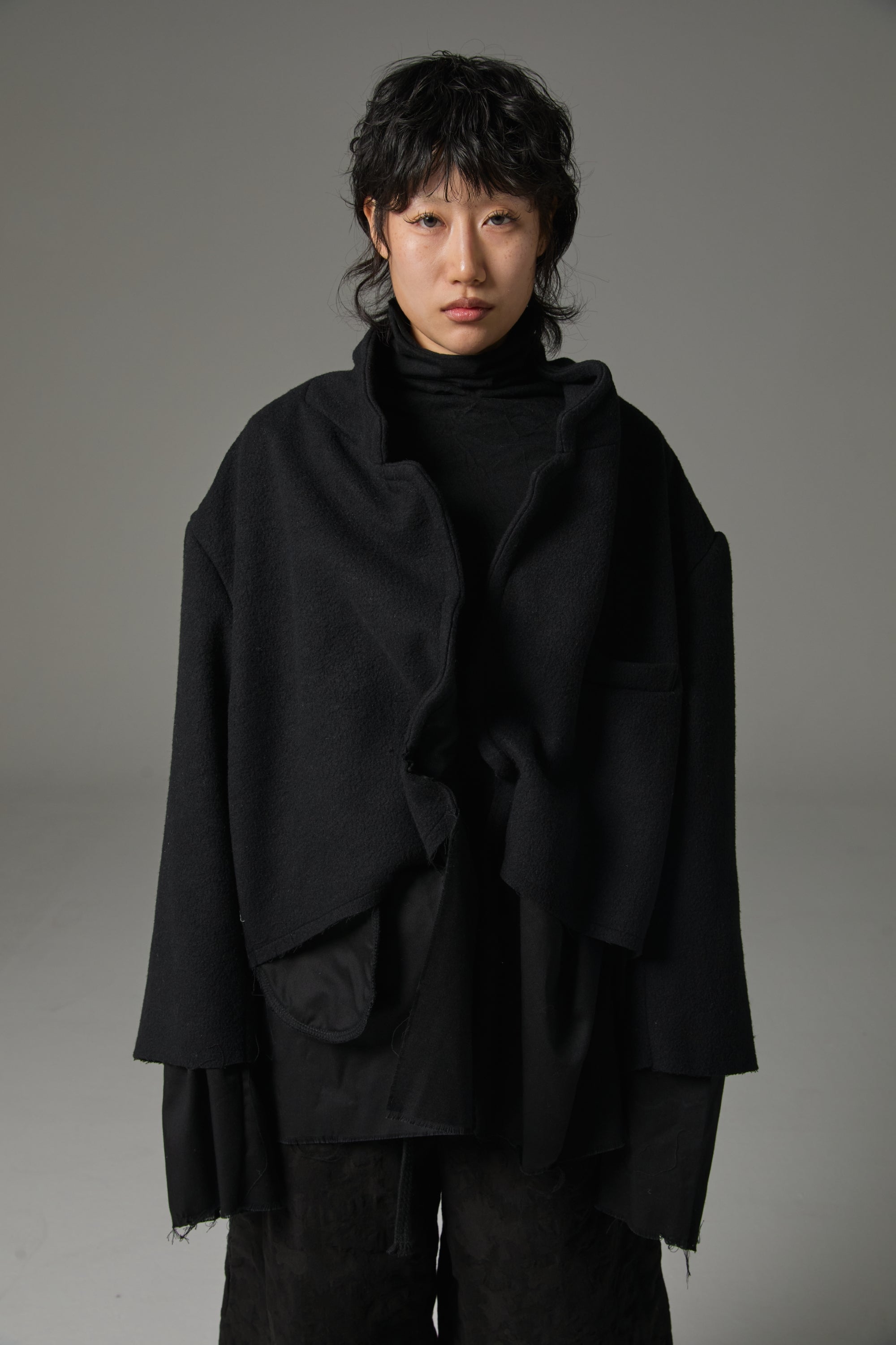 FW25 AMU UNISEX. Washed Oversized Herringbone Wool Shirt #BLACK