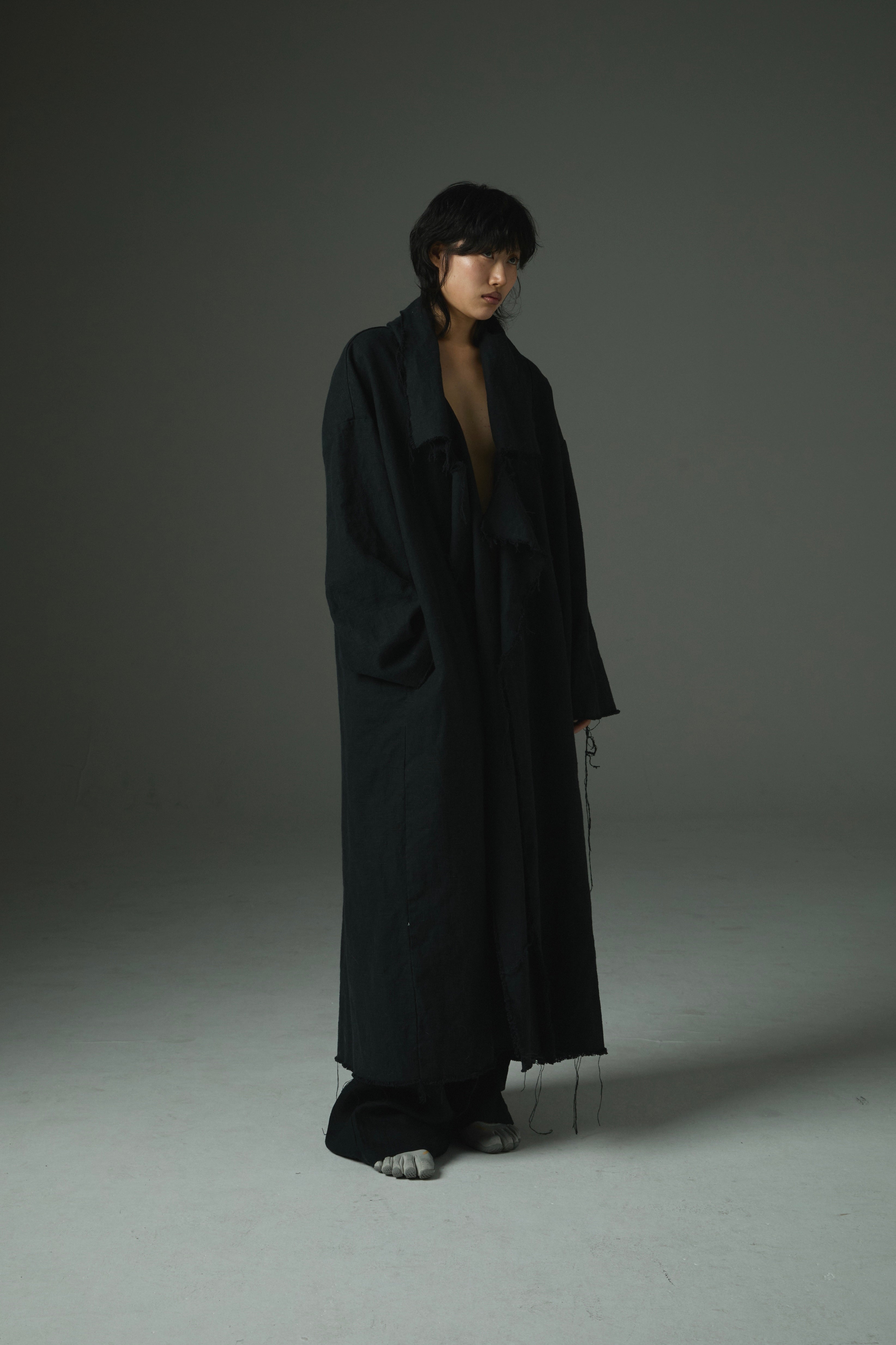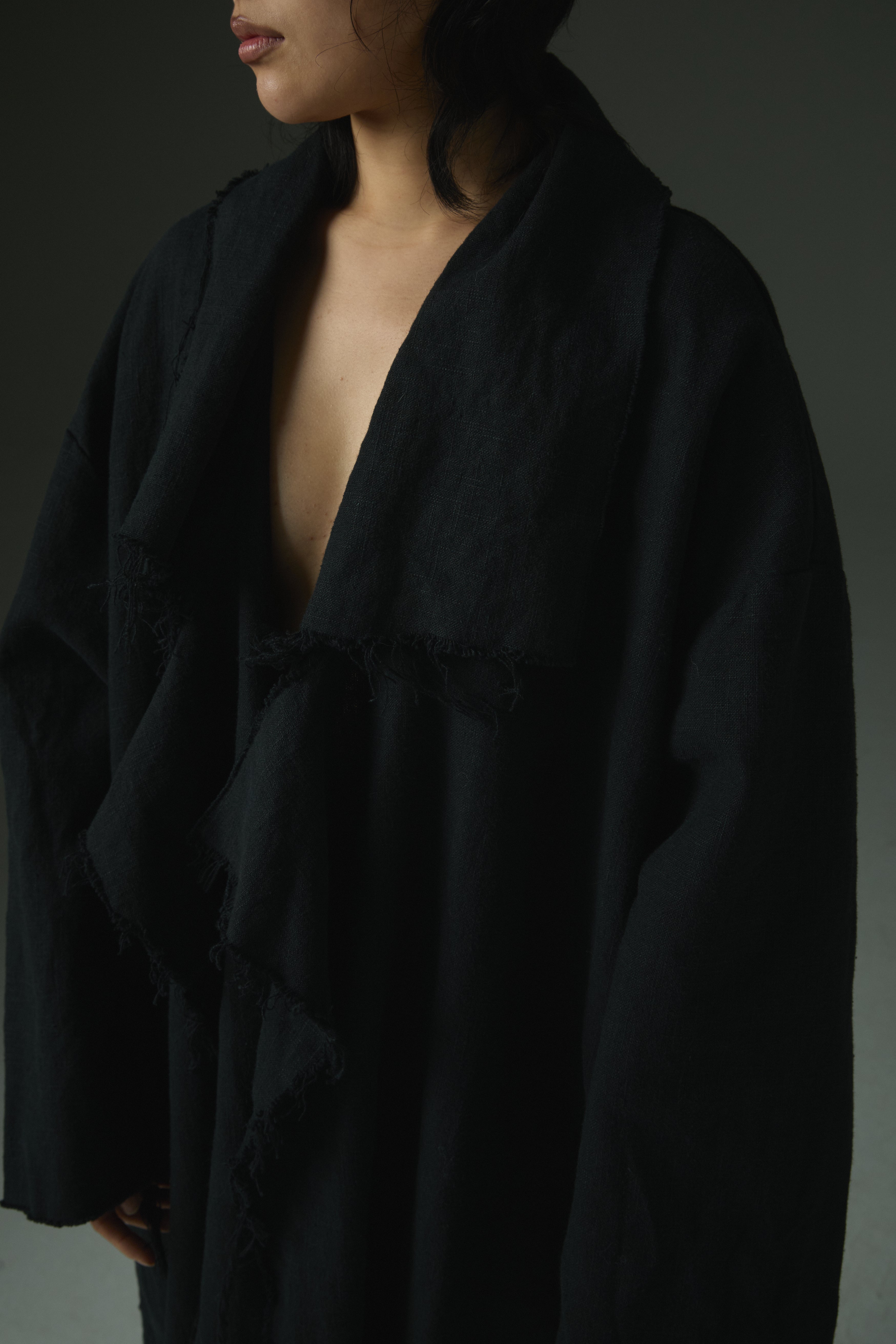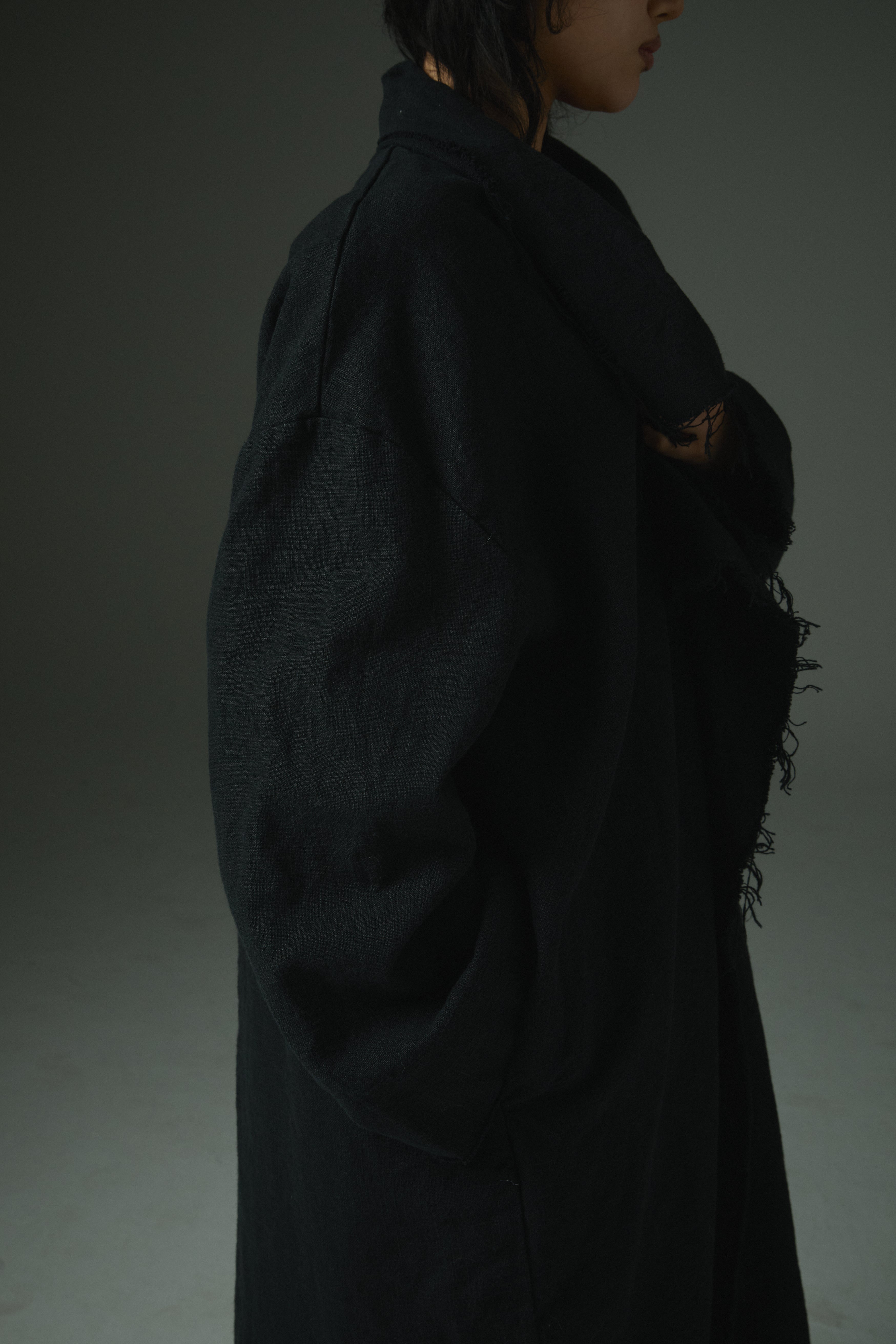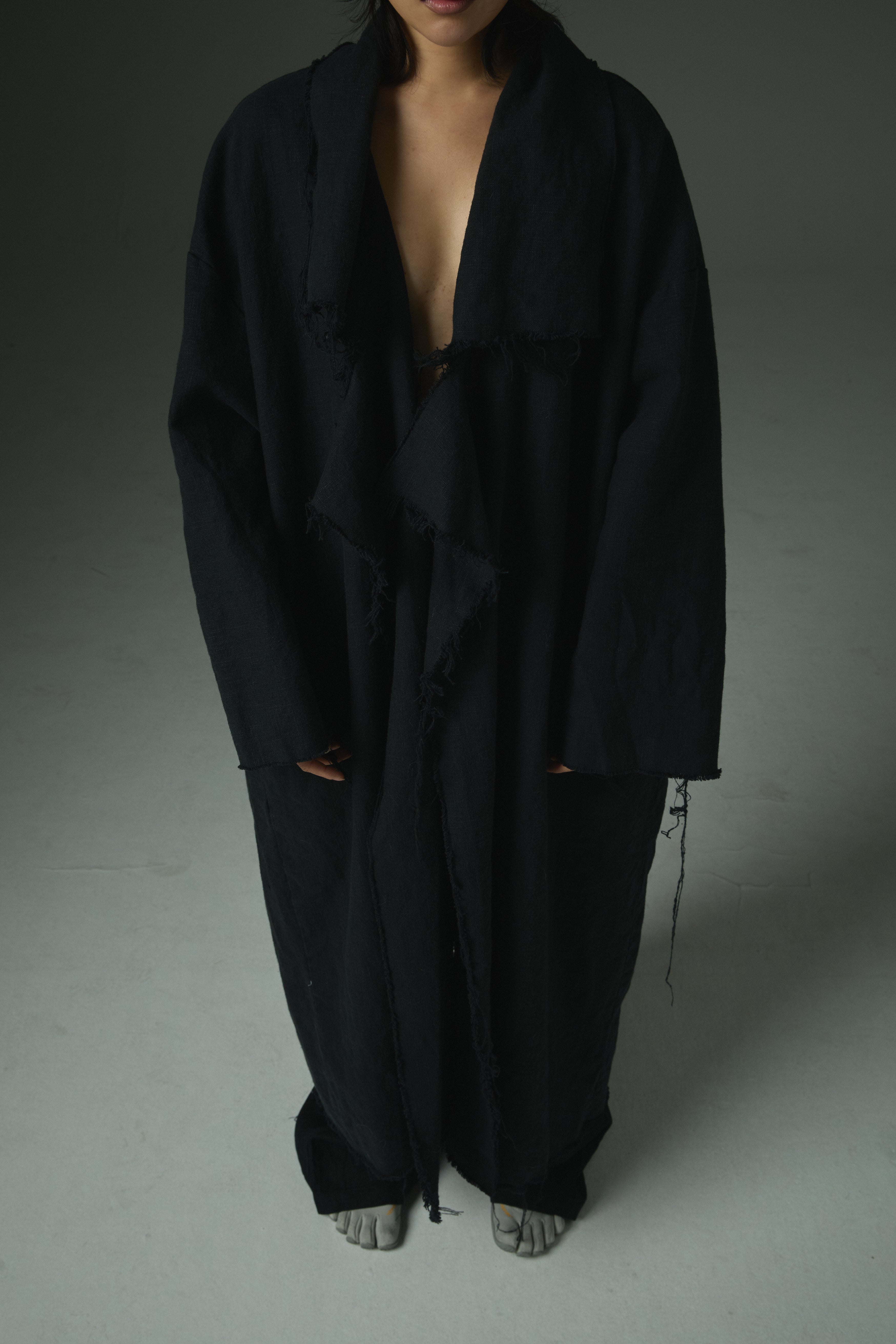 Raw-Edge Linen Long Jacket Ref.1414
