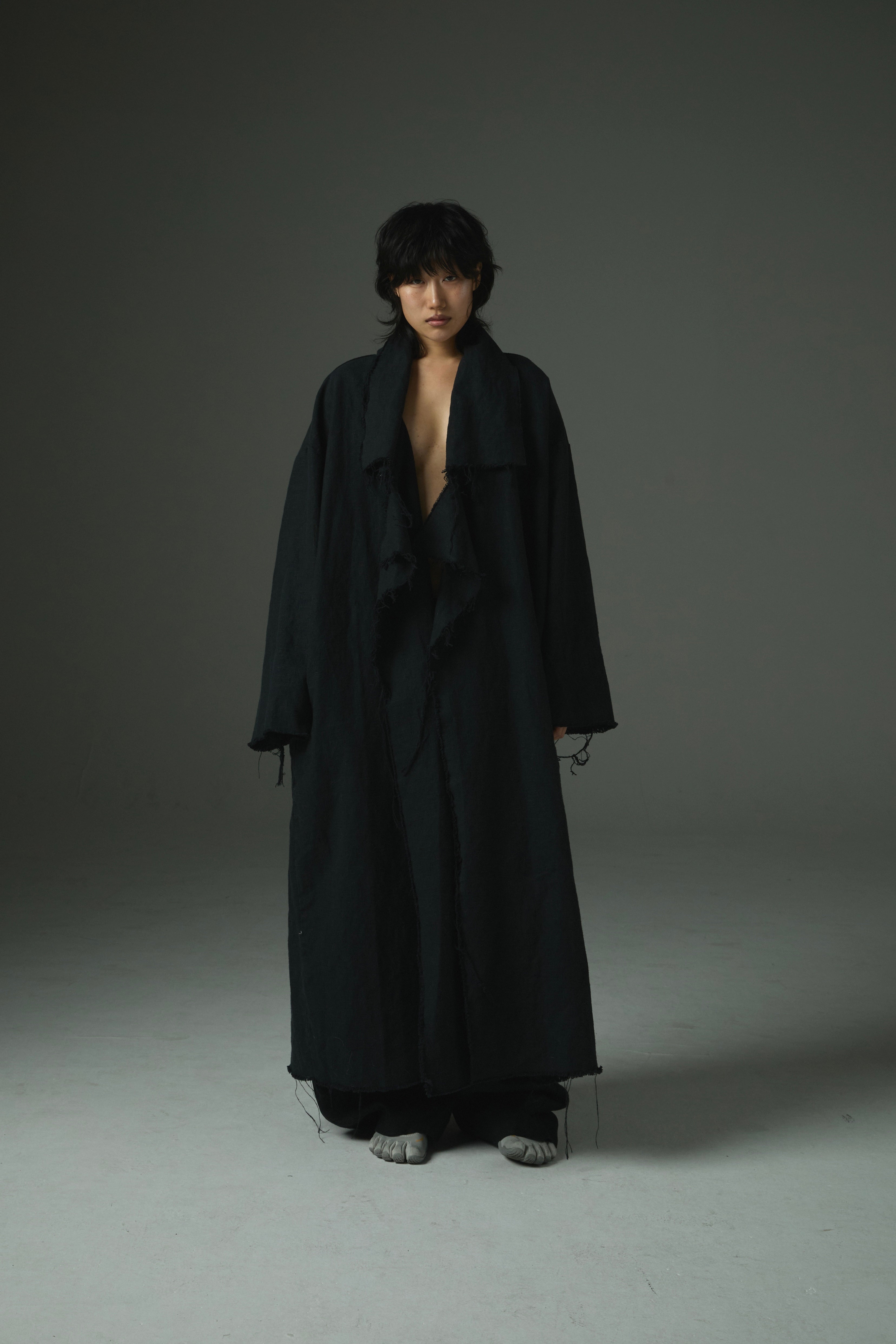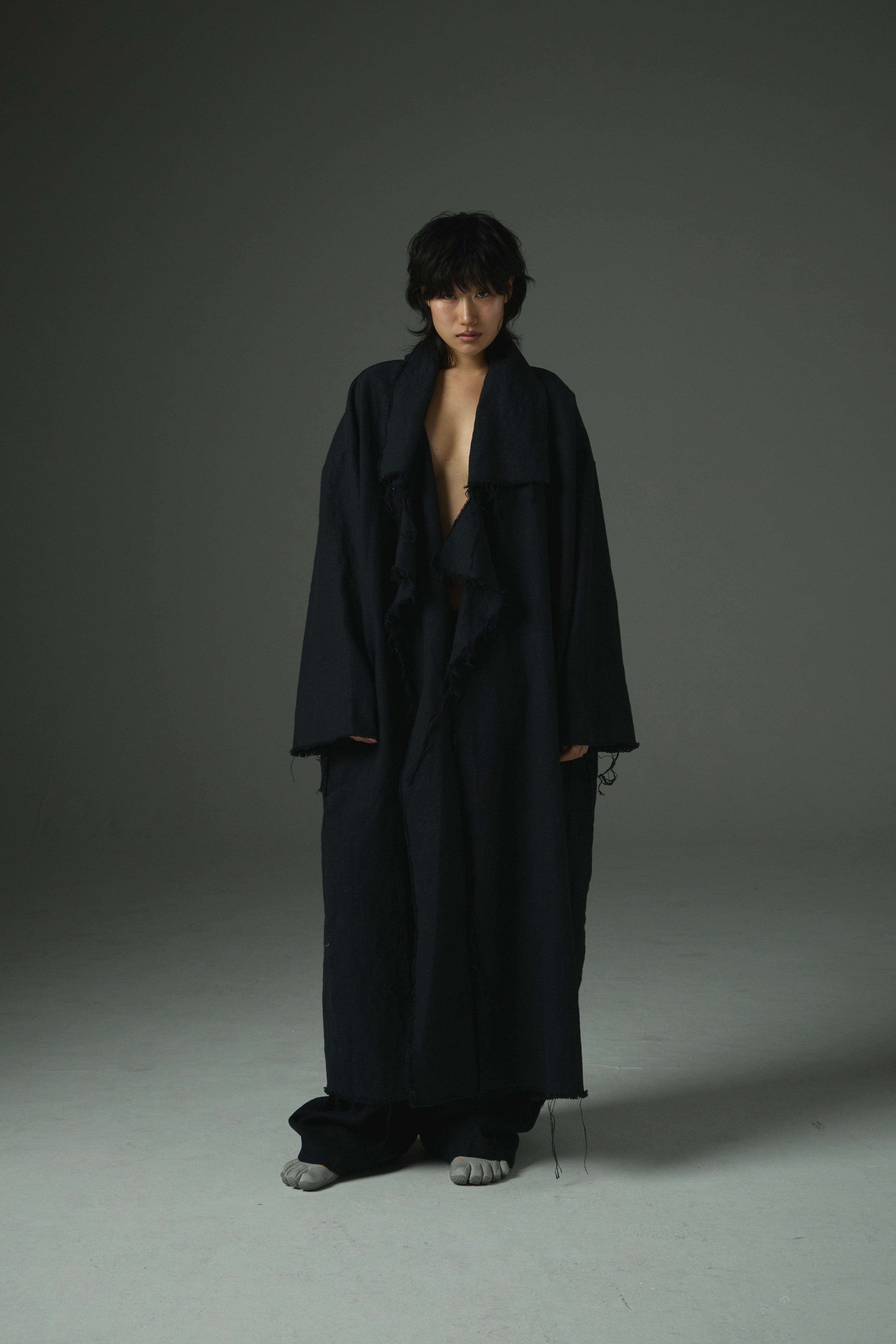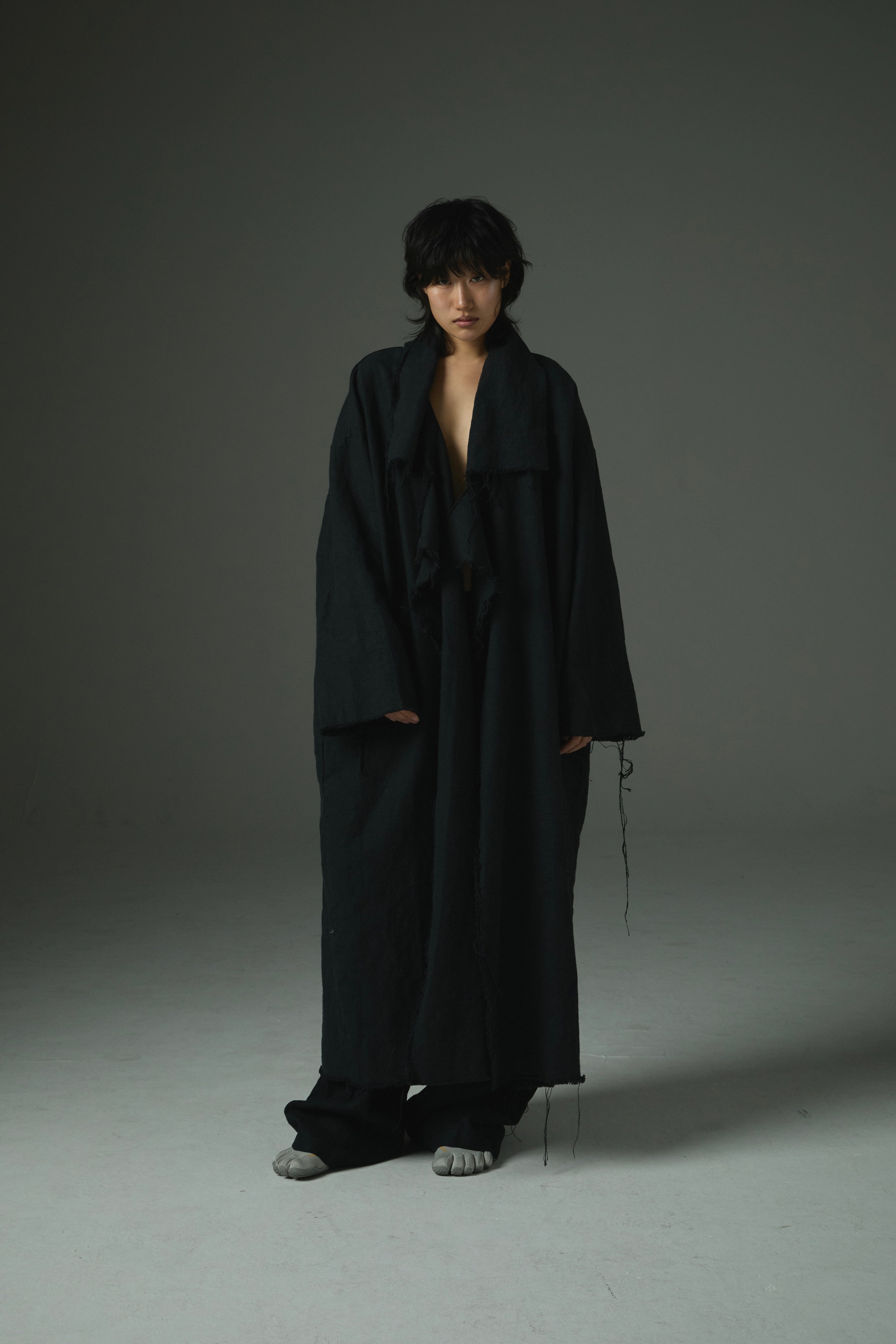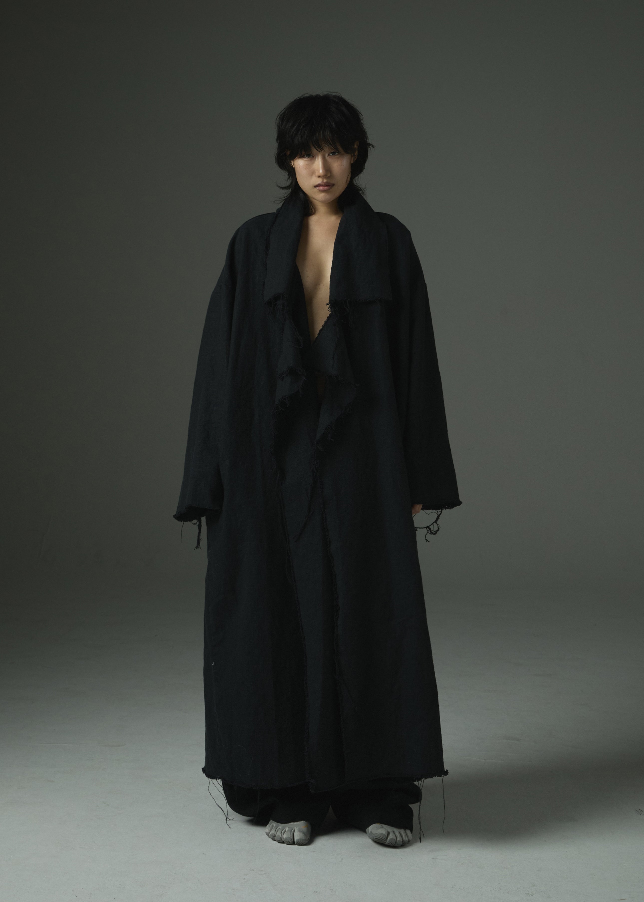 Raw-Edge Linen Long Jacket Ref.1414