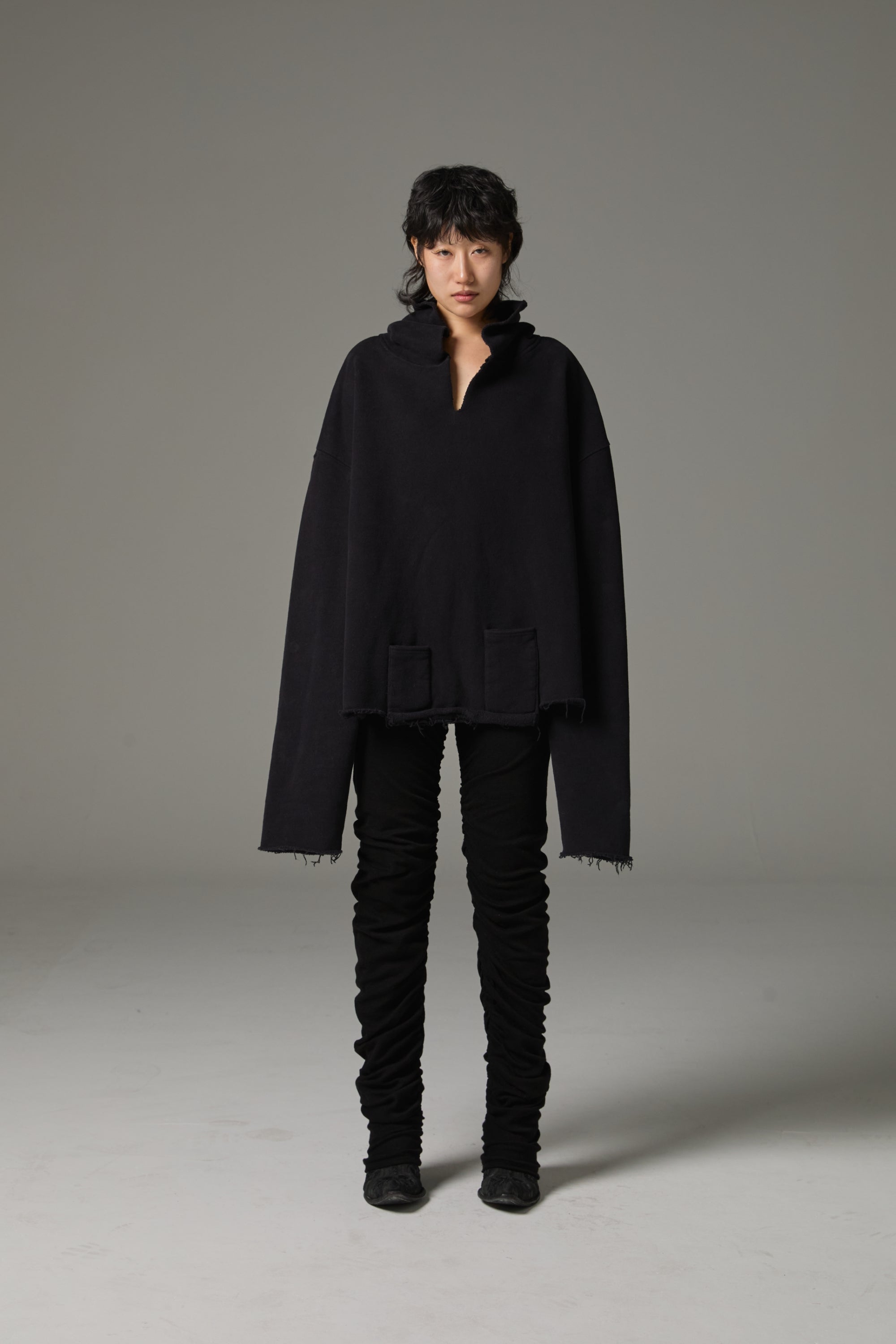 FW25 AMU UNISEX. Washed Oversized Herringbone Wool Pants #BLACK